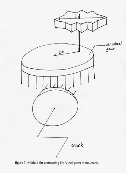 Our automaton is comprised of many very simple constructs. The front of the base is open and if the top was composed of some transparent material as intended, all of its components are visible. While individually, most of the mechanics are simple, connected together they seem to make an interesting system. Certainly Da Vinci's main motion is intriguing and far from intuitive. Looking at just that, one might not immediately guess the resulting motion if it was stationary. The pinwheel gear is an example of connecting two gears at right angles, and a normal gear connection is present as well. The conveyor belt is very simple mechanically but the fact that the marble is returned from start to finish adds some interest.