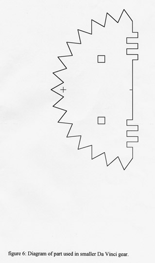Deciding on specifics of scale was heavily governed by the target size of the truck, which was to be something close to a small toy car, and the constraints of the tools available. We decided the best way to accurately create two circular gears of the correct size was to use a laser cutter. As happenstance would have it, there was one just waiting for our use. It did have some size limitations that meant we would either be forced to create a very small scale automata or cut separate pieces and attach them together. The latter path was chosen. Exact sizes were calculated and the gears took shape on paper. However, the laser didn't like our paper. At least, not for reading. Verbal commands and even threats went ignored until finally the lab technicians intervened with explanations that the laser was blind and deaf. Apparently we would need to use something called a computer to instruct the laser on how to function. Several tools were available, but they couldn't produce the exact gears we needed. Since the widest piece of wood that we could use was 4 inches wide, the gears had to be drawn so that they would fit on the wood. To do this, the largest gear was divided into 4 equal parts (figure 5) and the smaller gear was divided into 2 equal parts (figure 6). Thus Yuh-Wen undertook the heroic task of manually plotting the gears, point by point. After several years, she emerged from her cave and we did some test cuts of a thick cardboard paper. The gears seemed to stick a little bit so we decided to shave the edges of the inner gear down. That seemed to take care of the problems and we moved to wood.